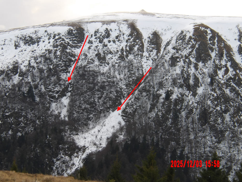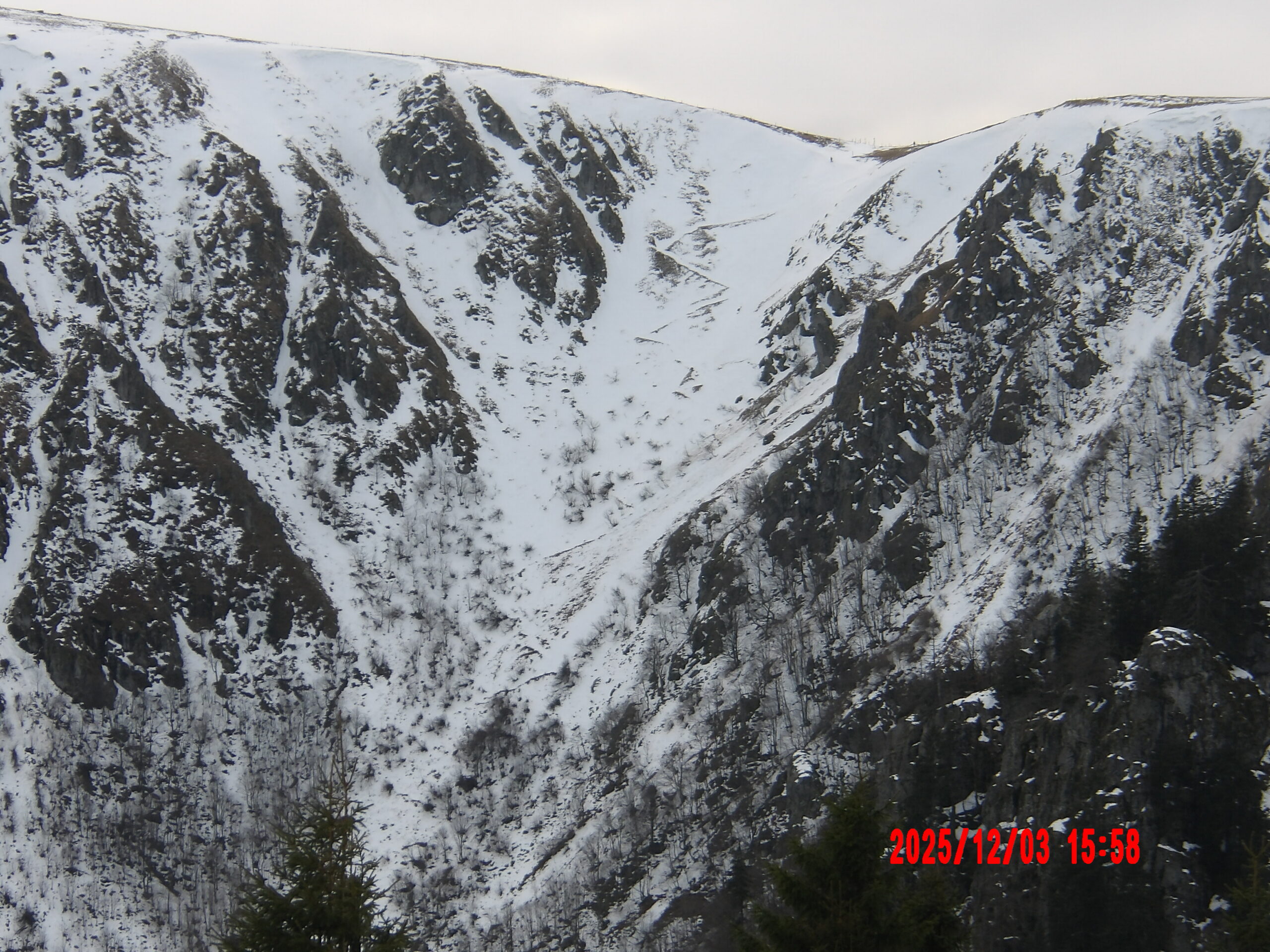 Ci dessous quelques photos des couloirs prises par Anthony B. le jeudi 4 décembre 2025 dans le massif du Hohneck.